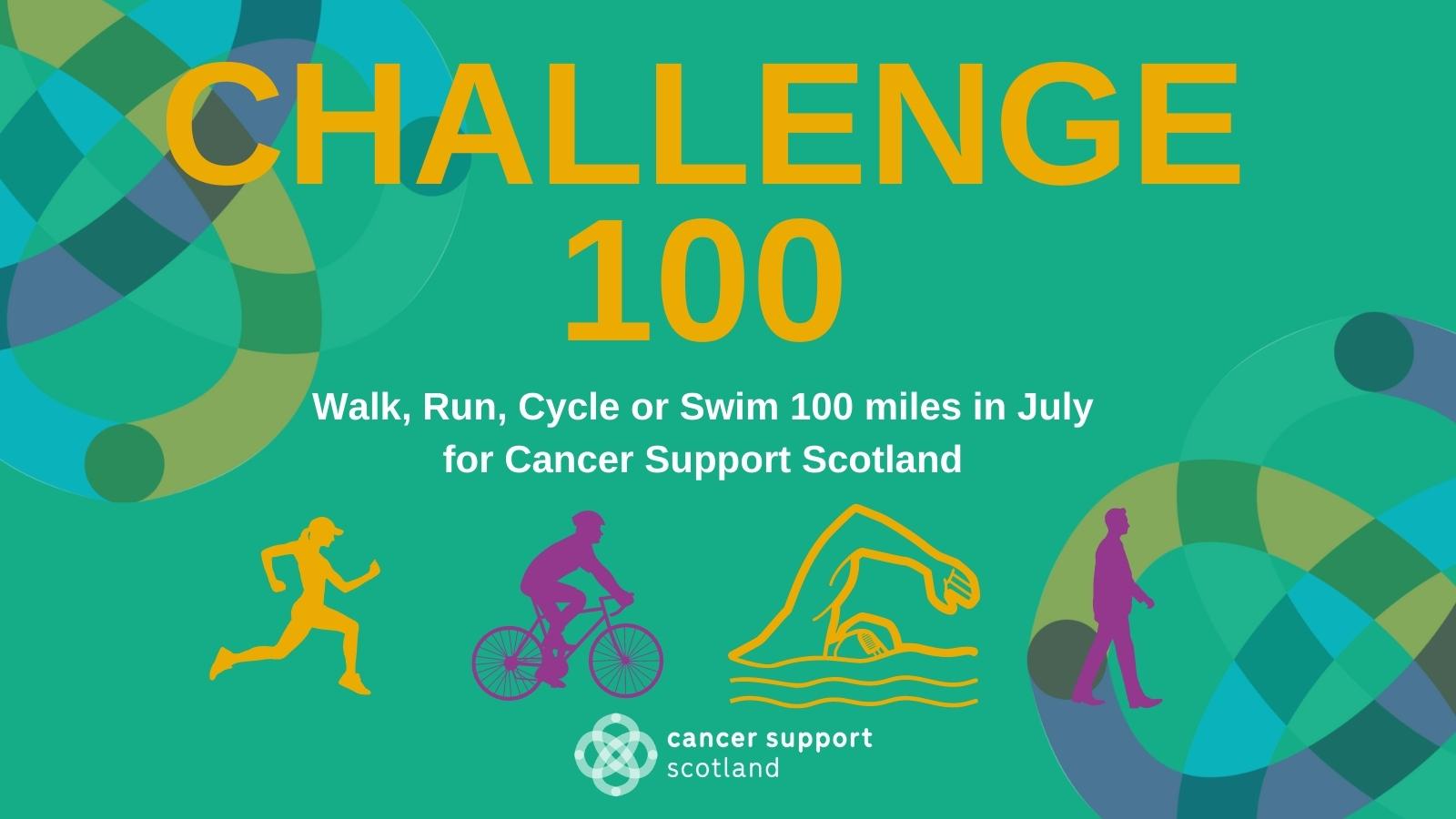 - Sign up to Walk, Run, Cycle or swim 100 miles in July for Cancer Support Scotland