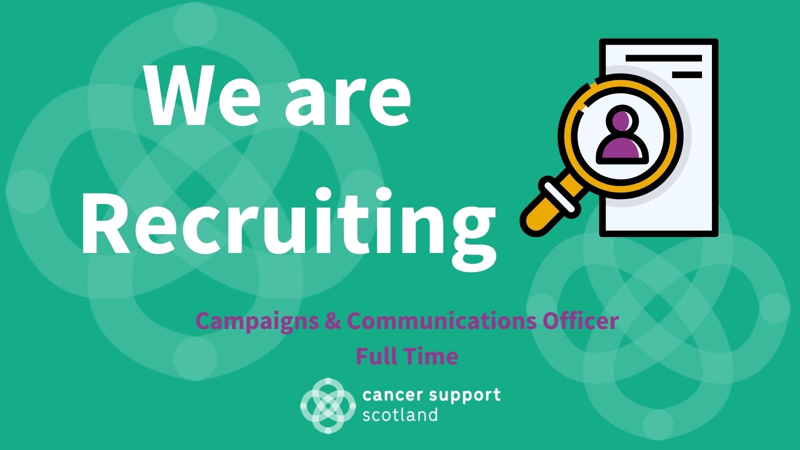 Job Vacancy - Campaigns & Communications Officerby denvircreatdev26/07/202209/11/2022 Campaigns and Communications Officer Closing date 12noon, Thursday 18 August 2022 Vie the full Job Descriptions Apply via AWS Charity Jobs below; www.awscharityjobs.com/campaigns-communications-officer-for-cancer-support-scotland Go back Get in touch Name* Phone* Email* Message*SubmitReset
